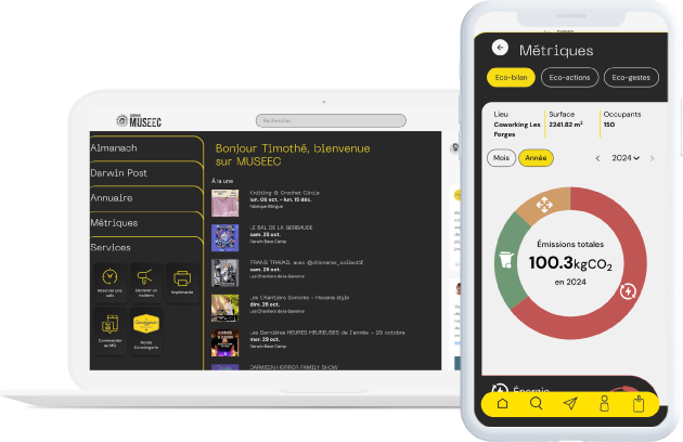 Museec est une application de gestion et d’animation des espaces de bureaux, offrant la réservation de salles, le signalement d’incidents, un mur d’échanges et la mise en avant de contenus éditoriaux.
